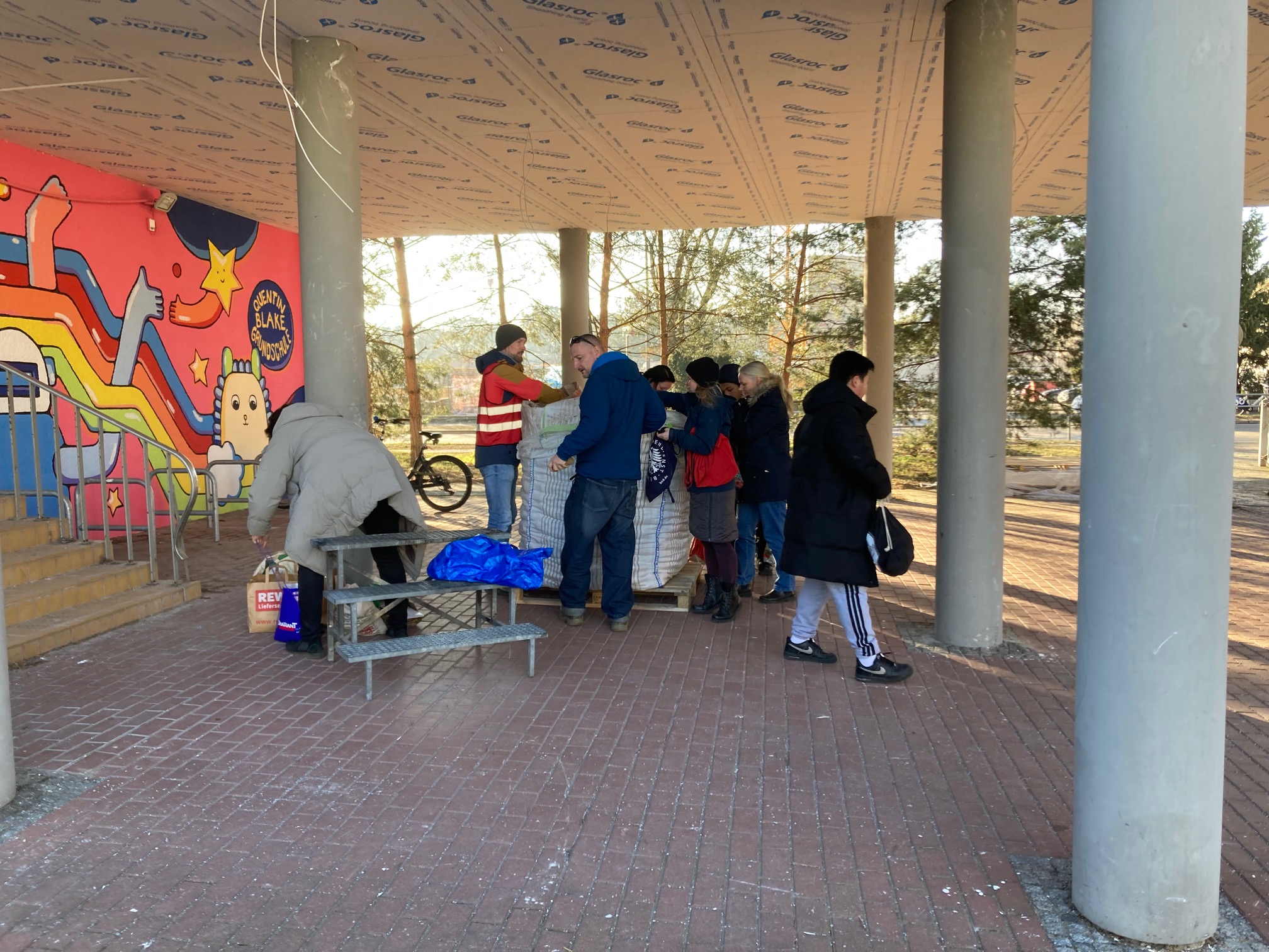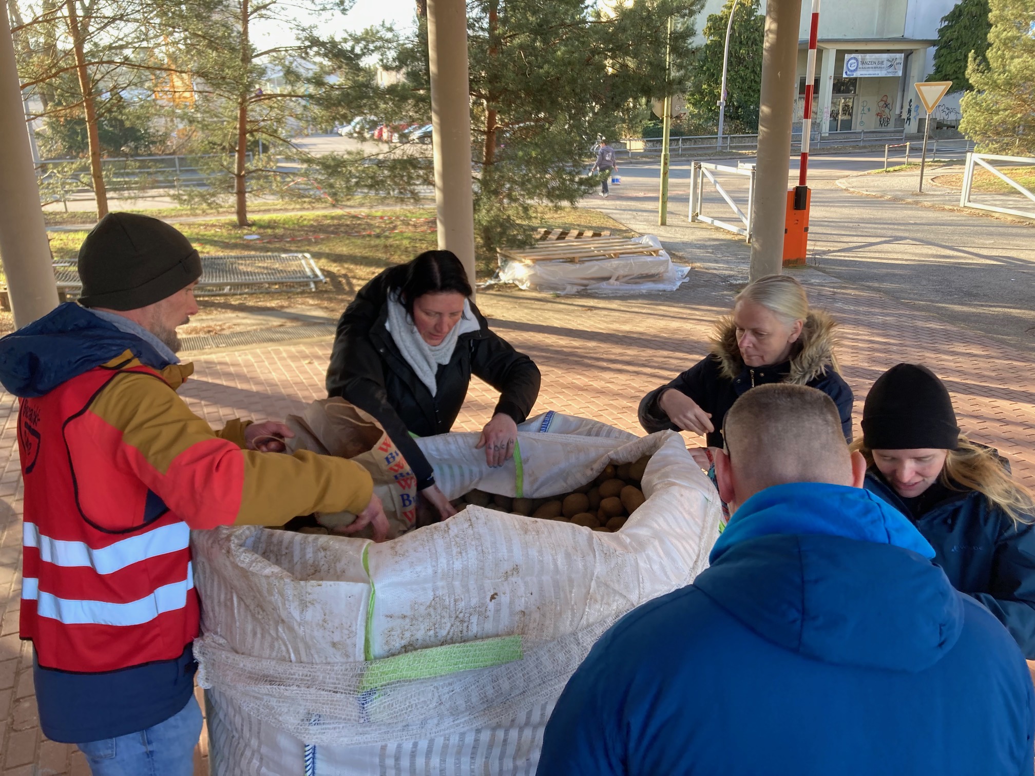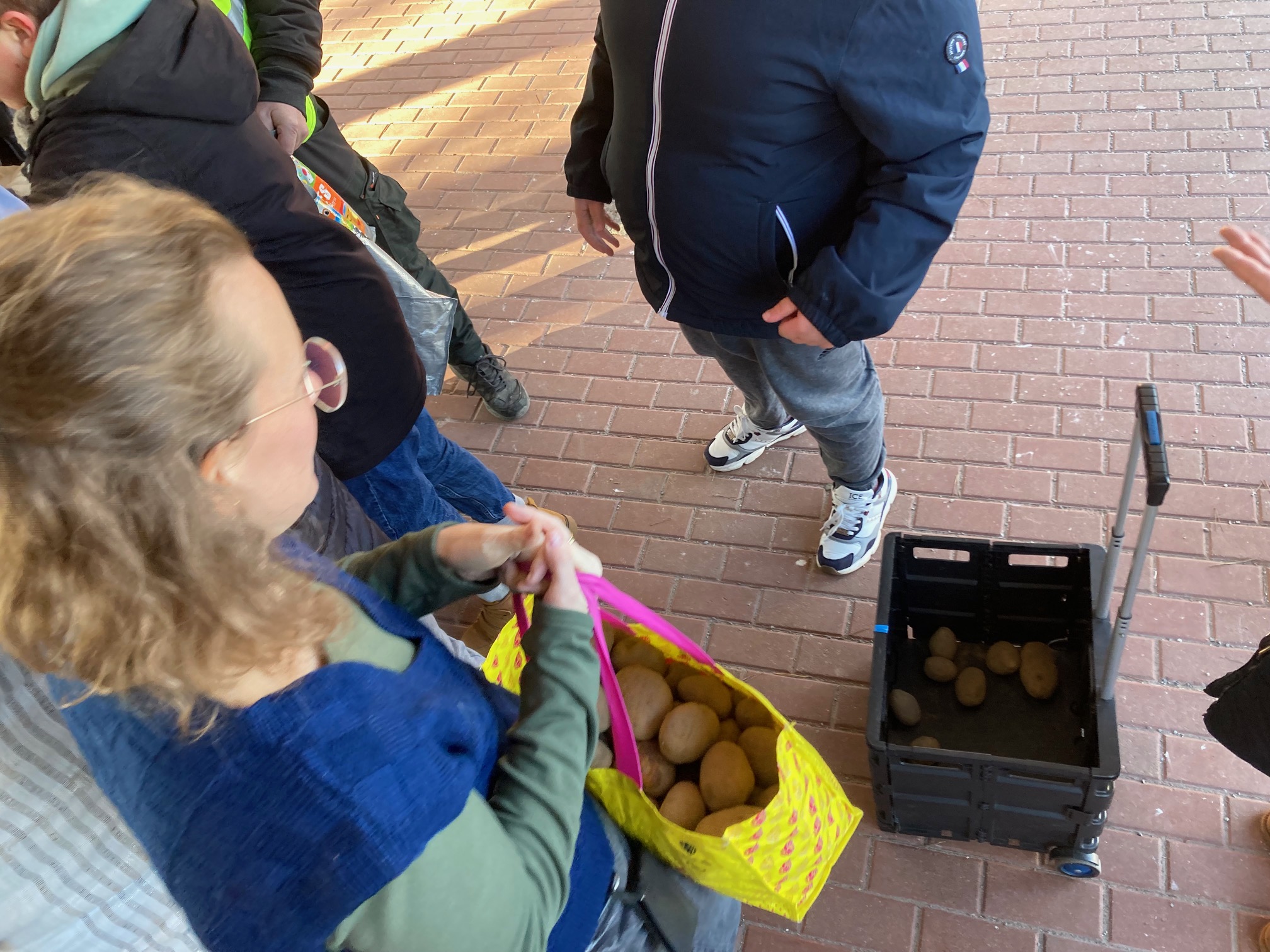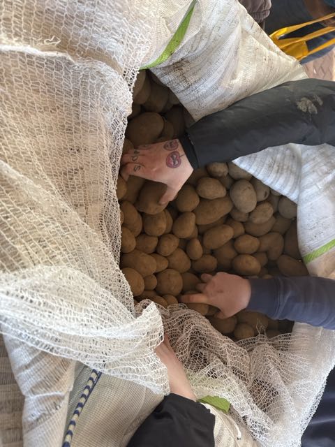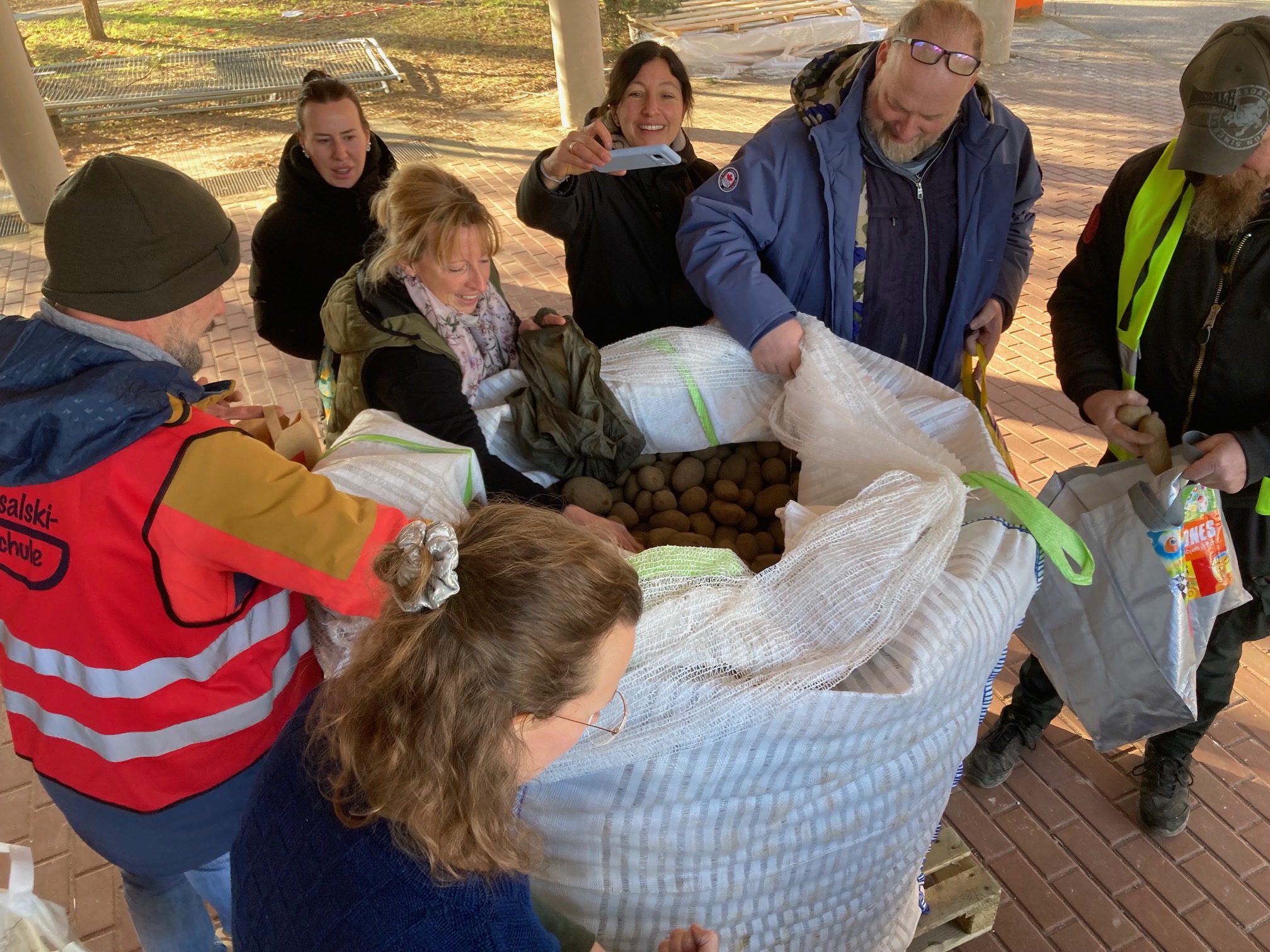 Insgesamt mussten 4.000 Tonnen Kartoffeln gerettet werden. Die Biesalski- und Quentin-Blake-Schule haben eine Tonne davon bekommen. Die eine Tonne war in 40 Minuten verteilt! Da wartet bestimmt viel Kartoffelbrei, Kartoffelsuppe, Kartoffelsalat, Pellkartoffel & co auf alle!
