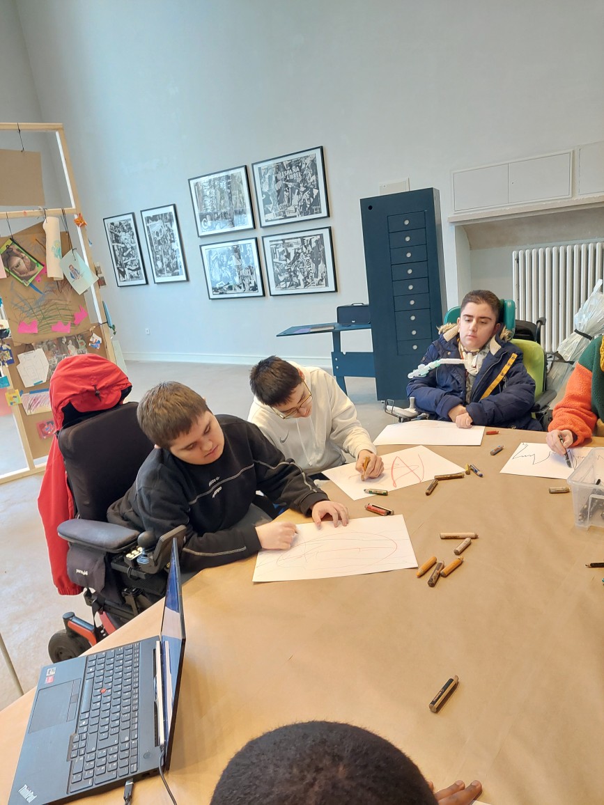 In einem Workshop erkundeten wir das Museum zunächst spielerisch: Wir bekamen Puzzleteile mit Fotodetails aus dem Museum und mussten die dazugehörigen Werke und Orte in den großen Hallen wiederfinden. Das schärfte unseren Blick.
